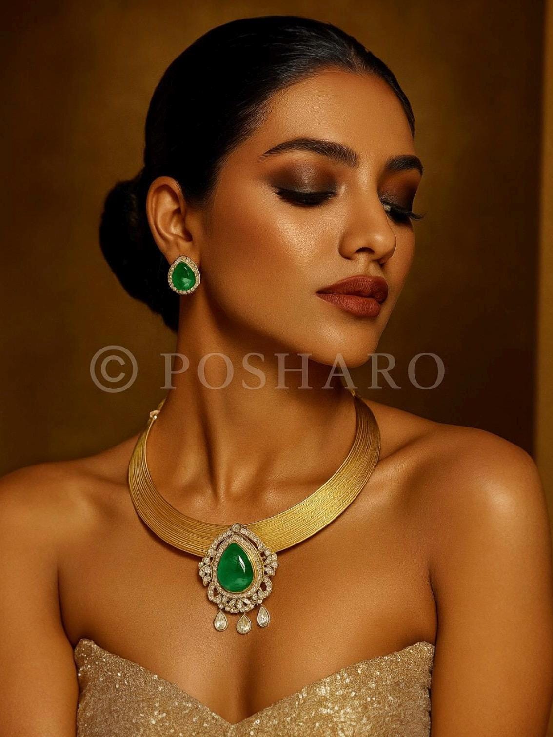 Add a touch of timeless elegance to your jewelry collection with this stunning and traditional polki Necklace Set. Featuring a beautifully designed necklace adorned with sparkling emerald doublet semi precious stones and vibrant polki stones, this set is perfect for special occasions or adding a statement to your everyday style.
