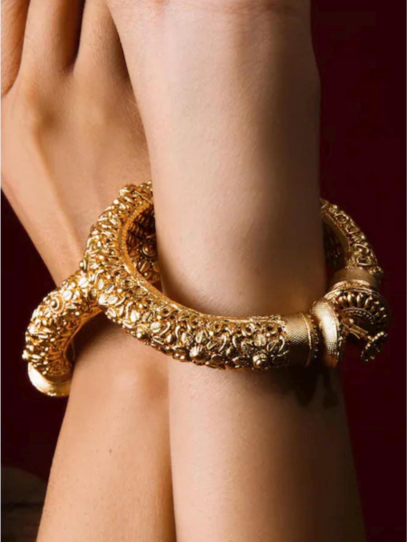 These ornate kadas are a staple in every Indian jewelry collection, offering a blend of tradition and timeless beauty.