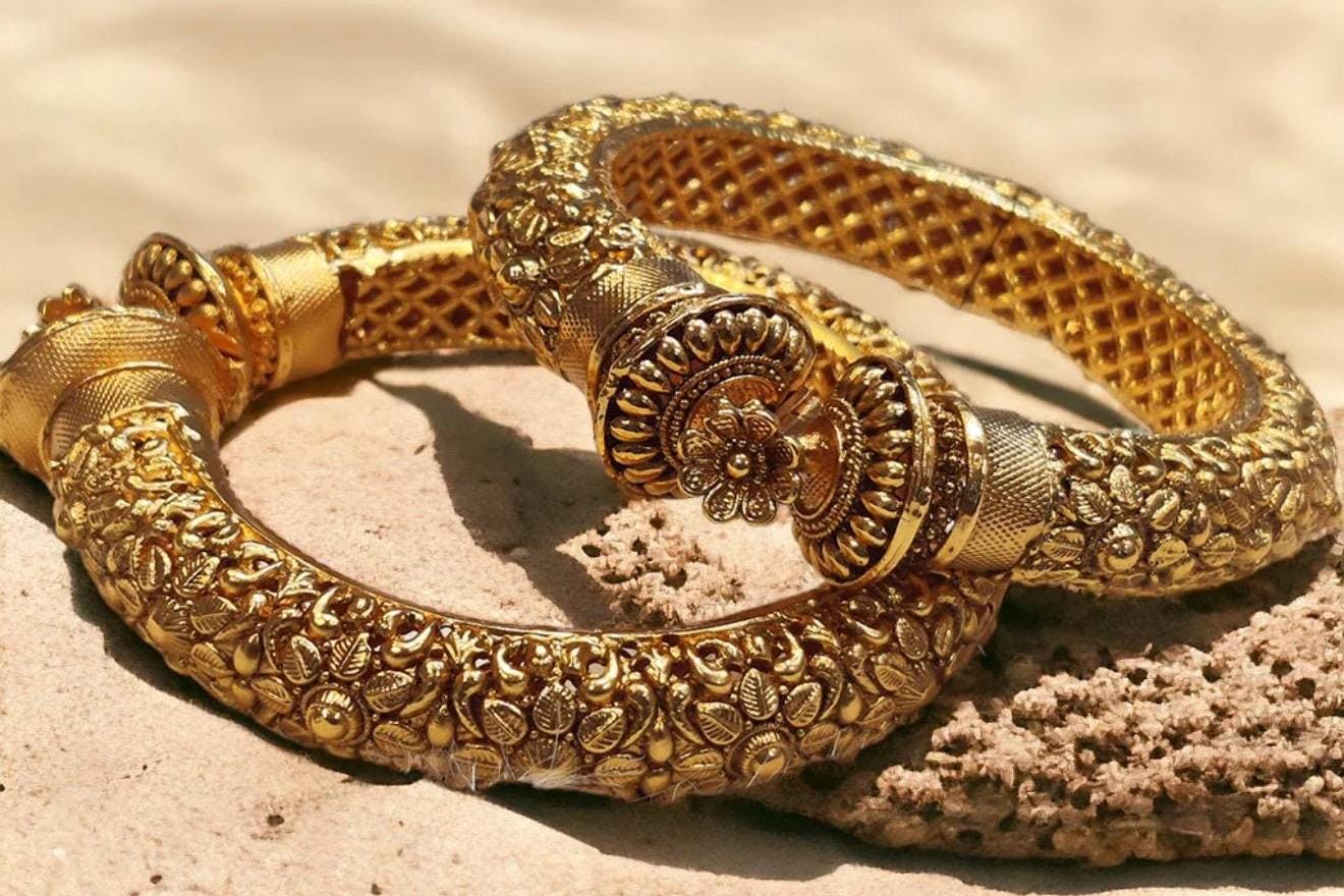 Enhance your jewelry collection with these stunning 24K gold-plated Indian kadas today!