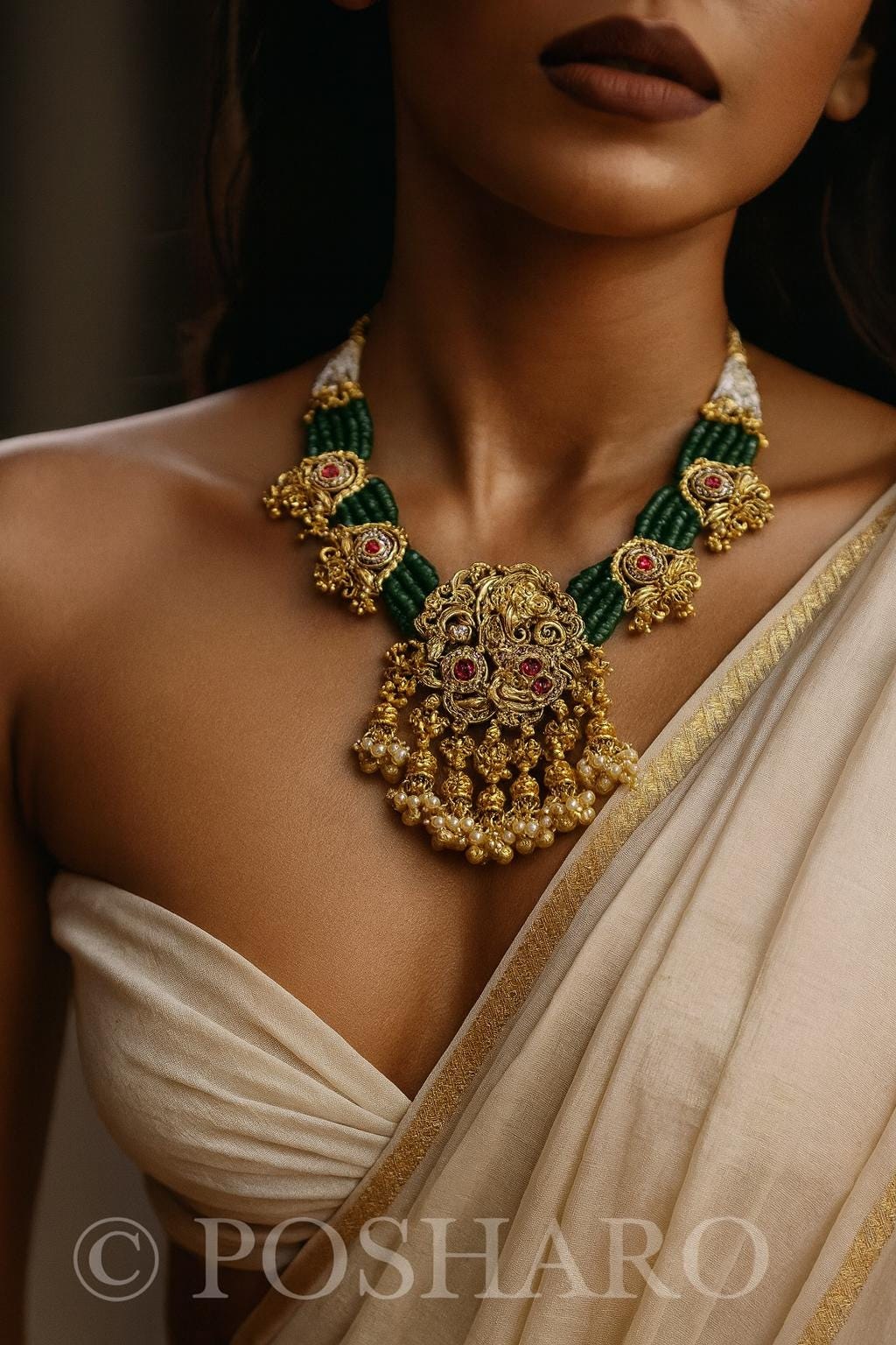 Add a touch of timeless elegance to your jewelry collection with this stunning and traditional polki Necklace Set. Featuring a beautifully designed necklace adorned with sparkling emerald beads and ruby semi precious stones and vibrant polki stones, this set is perfect for special occasions or adding a statement to your everyday style.