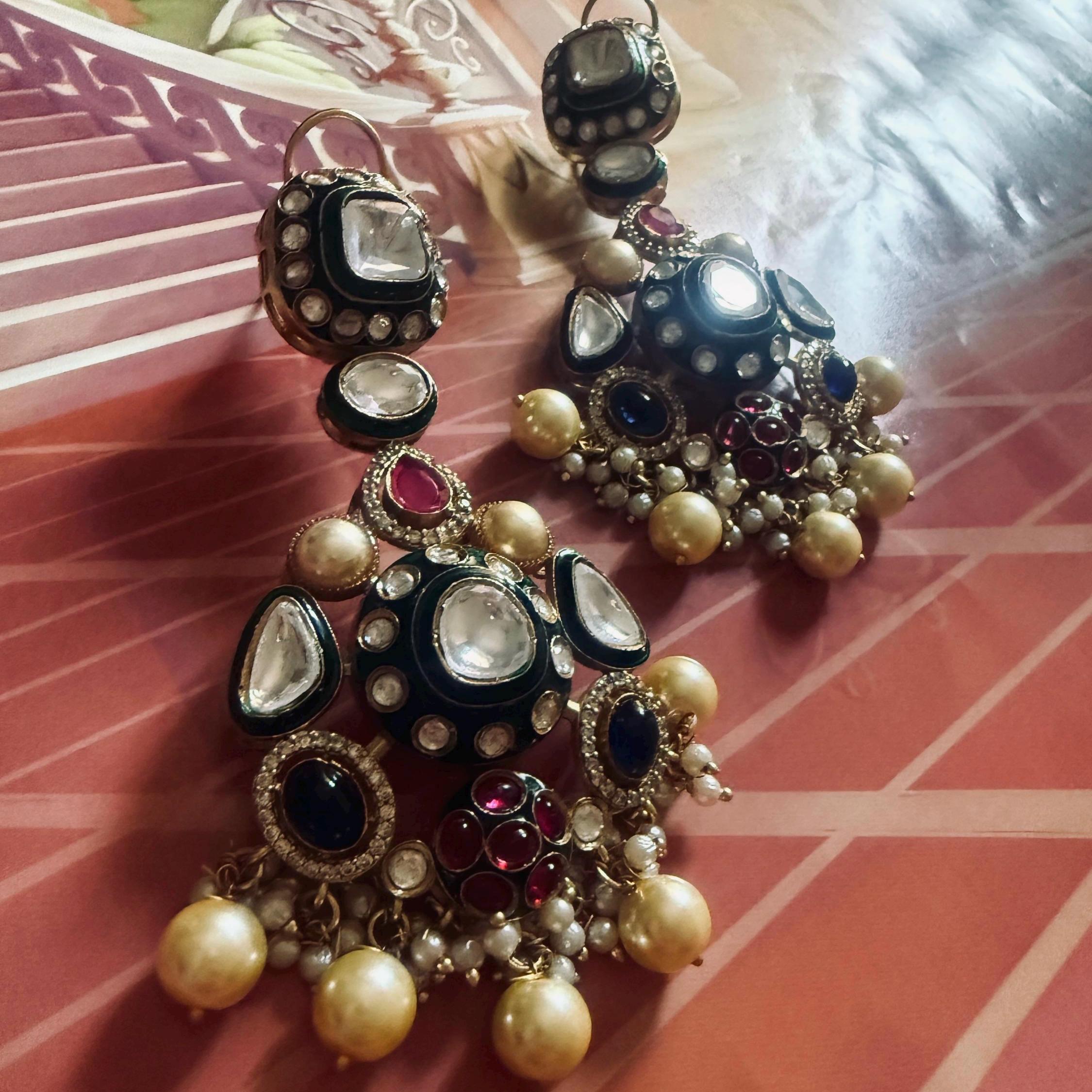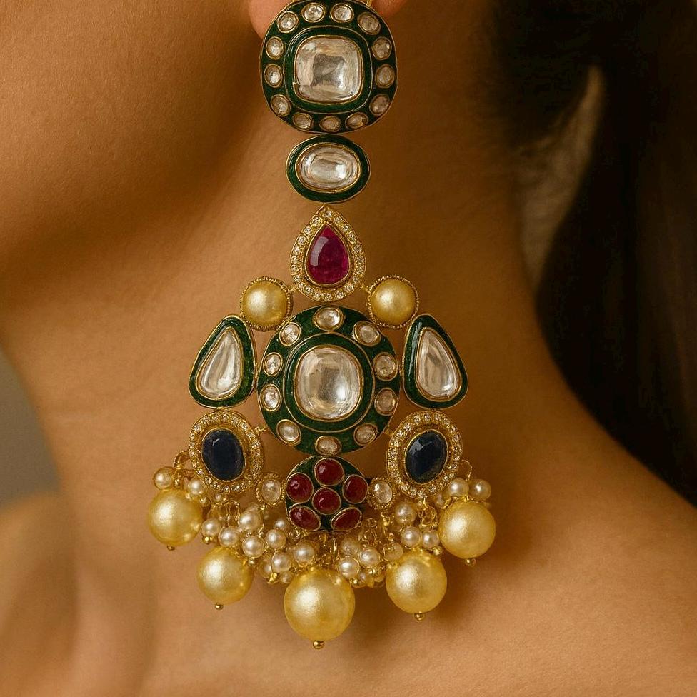 • Intricately set Polki Kundan stones with enamel detailing