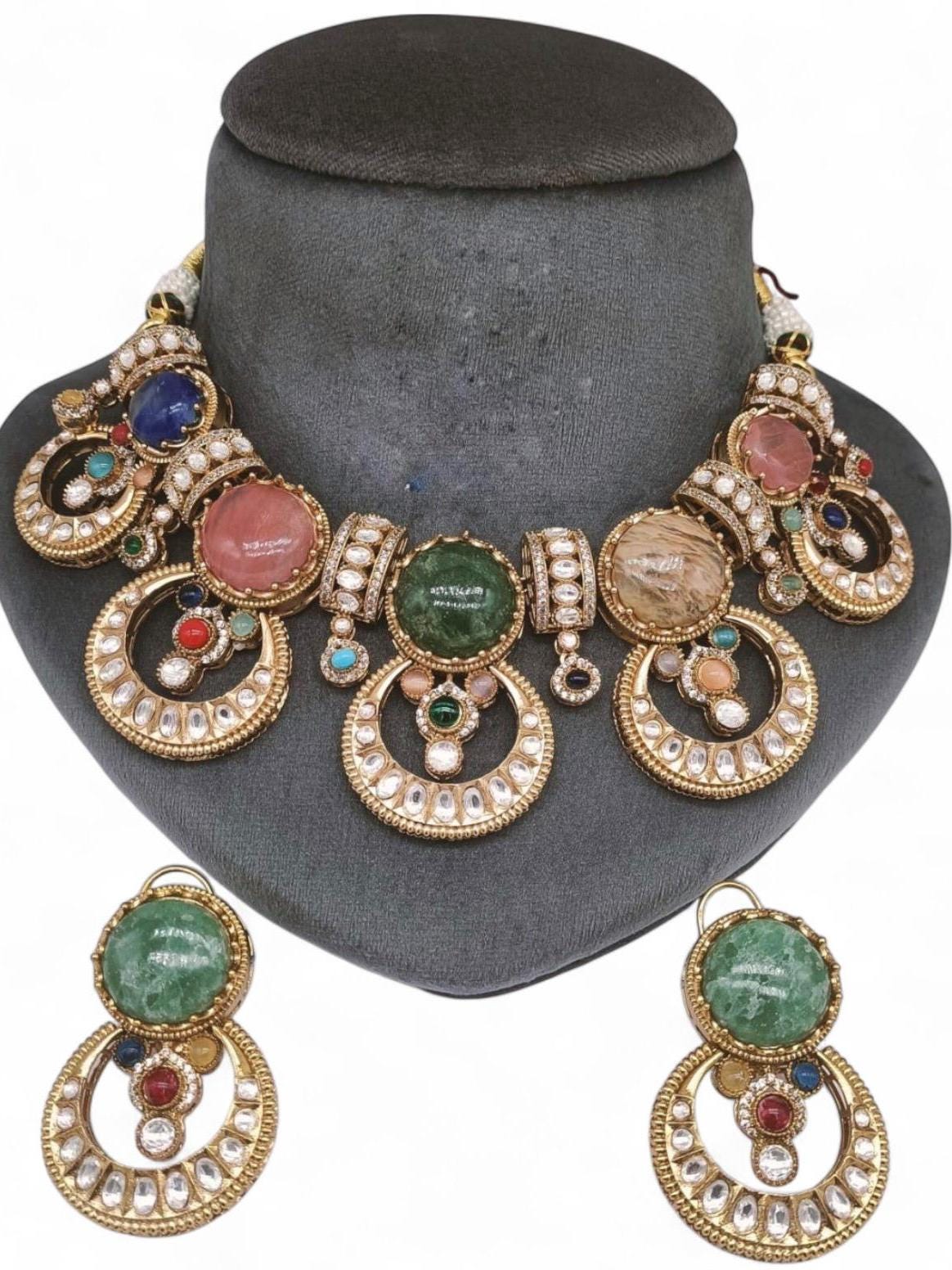 Statement Sabyasachi Inspired Multi-Stone Polki Choker Necklace Set – Handcrafted Luxury