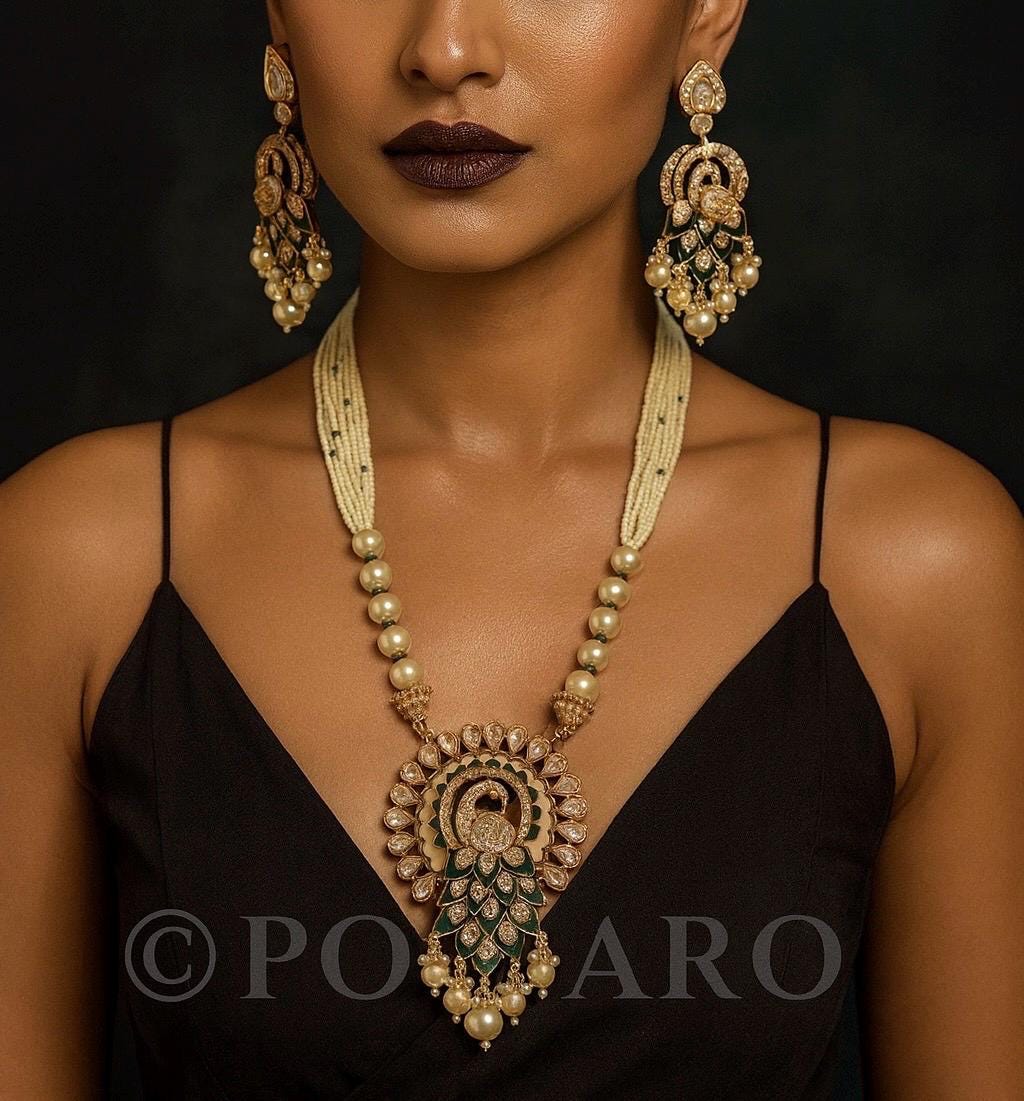 Introducing our Polki Long Peacock Necklace—a breathtaking fusion of semi-precious stones, real 999 silver foil intricate Polki craftsmanship, and regal peacock-inspired elegance. Perfect for weddings, festive occasions, or when you simply want to shine like royalty. 👑💎