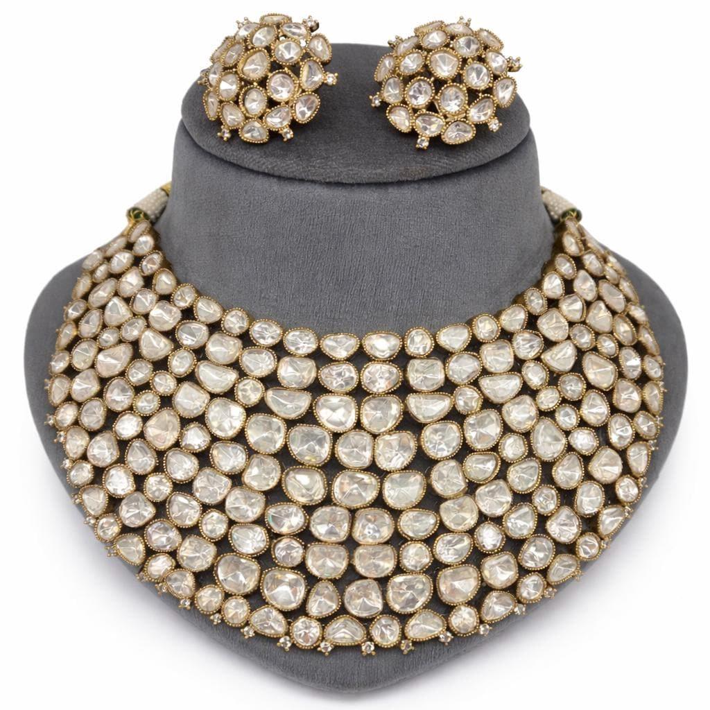 Moissanite uncut Polki Kundan Choker Set: Gold-Plated Indian Jewelry