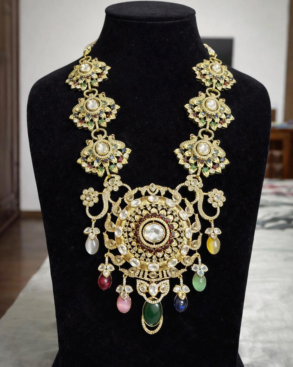 Perfect for brides, wedding guests, and festive occasions, this luxurious necklace embodies the grandeur of royal Indian heritage and modern Bollywood glamour.