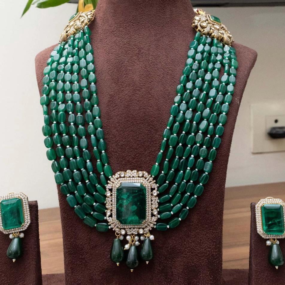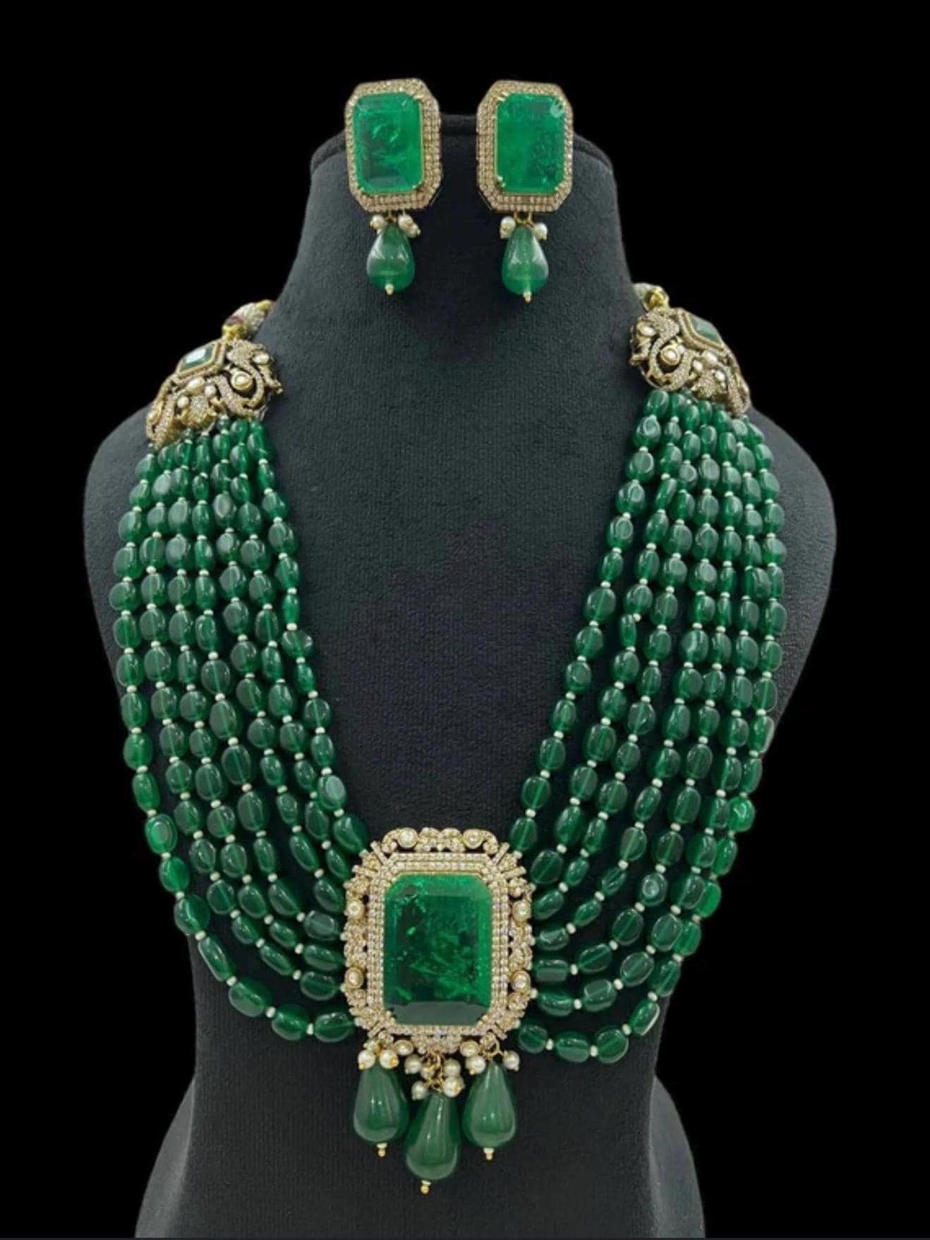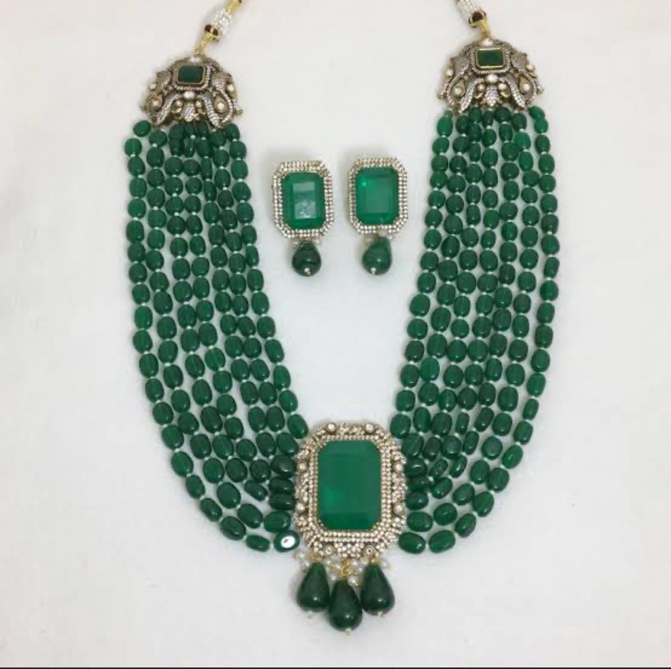 Bollywood Moissanite Green Emerald Polki Sabyasachi Inspired Necklace Set /Reception victorian Bridal Choker Set