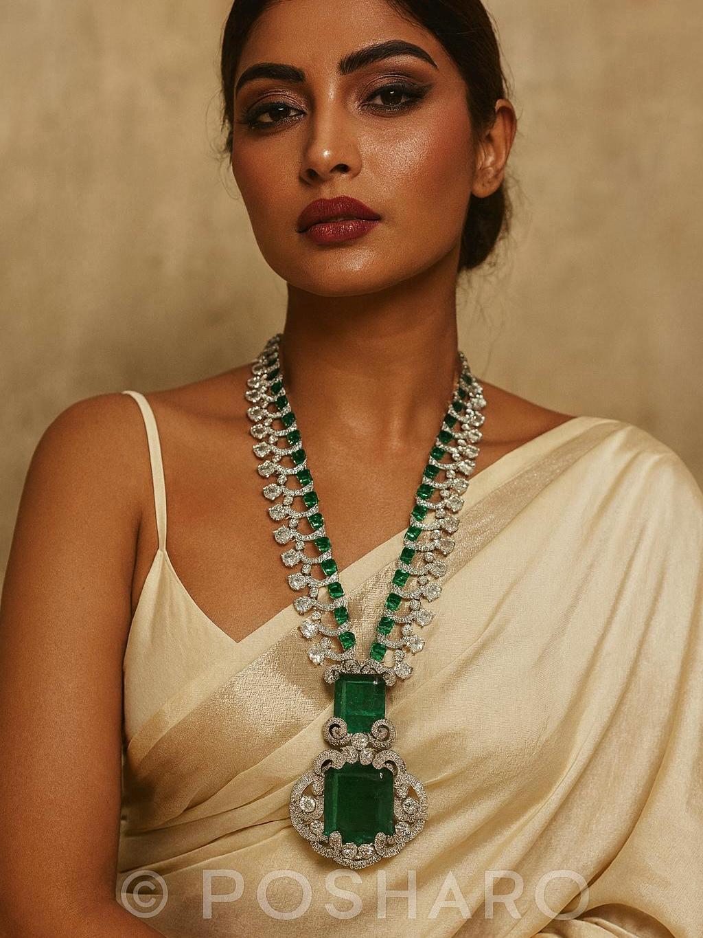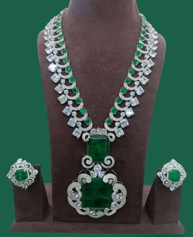 Premium Emerald Green CZ Royal Statement Necklace Set | Statement Necklace | Bollywood-Inspired Bridal Jewelry | Luxury Diamond Necklace