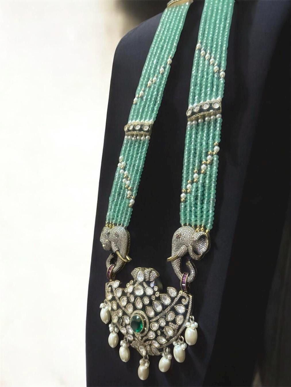 Introducing our Polki Mint Green Long Elephant Motifs Necklace—a breathtaking fusion of semi-precious stones, intricate Polki craftsmanship, and regal elephant -inspired elegance. Perfect for weddings, festive occasions, or when you simply want to shine like royalty. 👑💎
