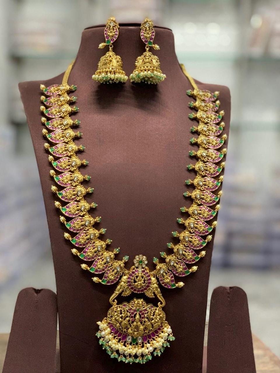 Step into royal tradition with this majestic South Indian Temple Jewelry Set, a true statement of timeless craftsmanship and divine beauty.